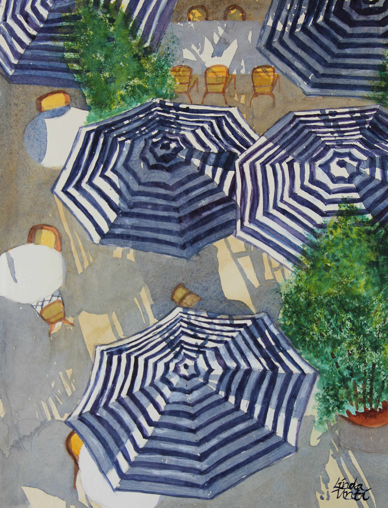“Watercolor is my medium and lifestyle and architectural elements of Italy and Sonoma County are what I absorb and become my subjects.”